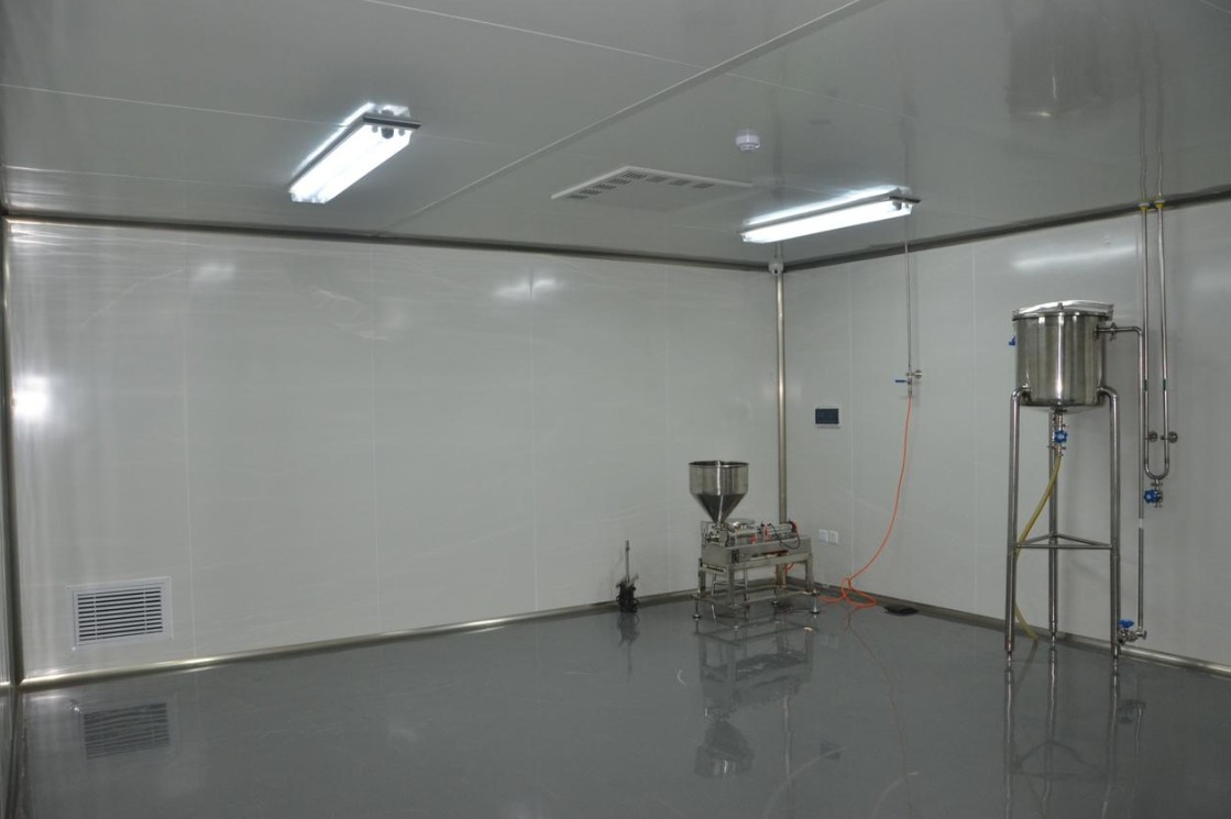 全区墙体采用机制岩棉夹心彩钢板,整板厚度50mm, 面壁钢板厚度0.426mm,洁净室高度3.2米