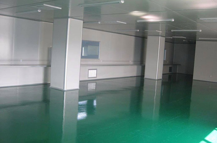 地面采用溶剂型环氧树脂,强度C20以上,表面密实,无起沙、空鼓、裂缝。颜色艳丽,防静电性能恒久不变,可承受中等以下载荷,耐高温。在满足使用的基础上,可以起到装饰的作用,耐磨、耐洗刷、防尘、防滑、性能优良,颜色和光泽均匀一致。