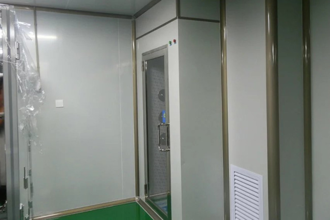 根据《洁净厂房设计规范》车间的墙体和吊顶必须采用不产尘、不积尘表面平滑的材料施工,并且不能在车间中存在死角。采用净化厂房施工专用彩板,基板顶板采用宝钢0.4的钢板,芯材密度达到14kg/m3,铝材采用华联专用铝型材,为提高净化间的使用寿命,并达到美观大方的效果,所有铝型材进行电泳处理。